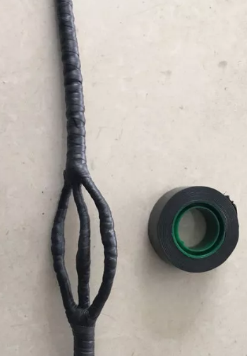 第六步:用自粘帶對以包扎完高粘帶部分繼續以半疊繞狀態進行包扎,往返一次包扎且延伸到外護套處,包扎緊實。